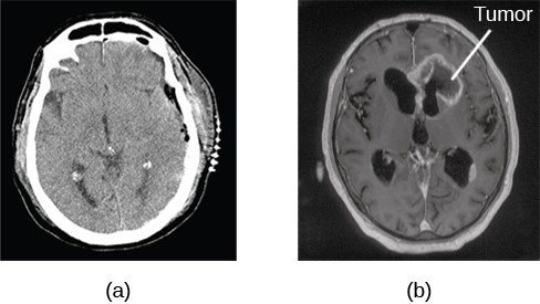 人の身体または脳の特定の部分に多数のX線を当てる。X線は、さまざまな密度の組織をさまざまな速度で通過するため、コンピューターはスキャン対象の体の領域の全体的な画像を作成できる。CTスキャンは、脳腫瘍の有無、脳萎縮の有無の確認に頻繁に使われる。